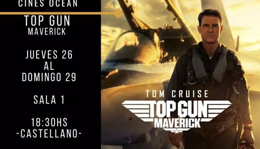 La cartelera de Cines Ocean se renueva este jueves con el esperado regreso de Tom Cruise de la mano de "Top Gun: Maverick", la secuela del clásico de aviación de los '80.