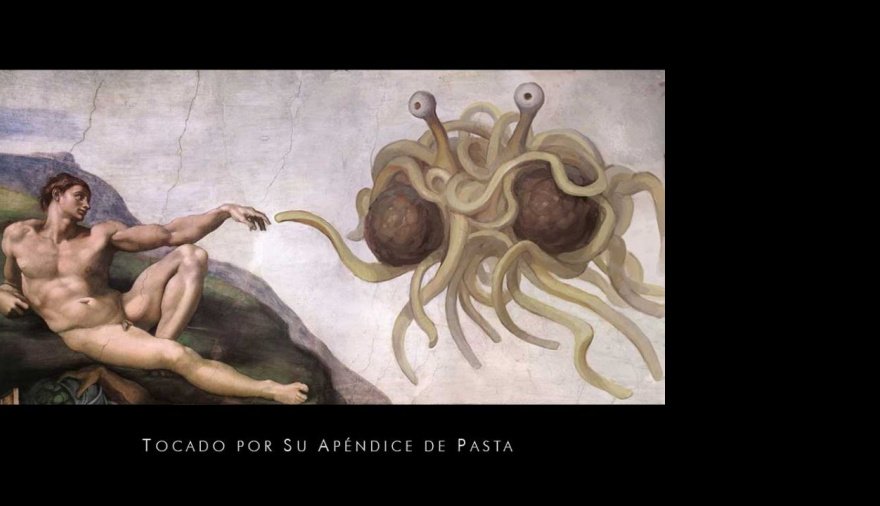 Este tan lúdico como interesante culto, conocido como pastafarismo, fue creado a mediados de los 90 en Estados Unidos como una crítica contra el acercamiento a la enseñanza evolucionista en las escuelas públicas. El Evangelio del Monstruo de Espagueti Volador, creado por Bob Henderson, reza lo siguiente: