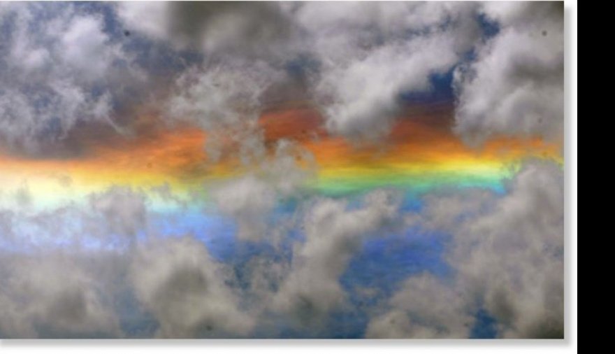 La diferencia con el arcoíris común es que es más corto, de mayor espesor y no es causado por la refracción de luz en gotas de agua, sino a través de cristales de hielo en nubes.