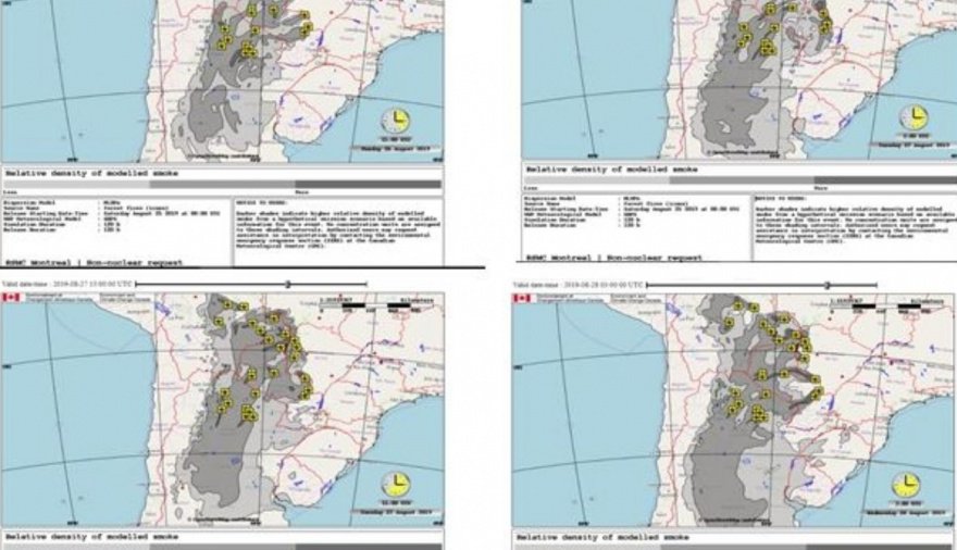De acuerdo al pronóstico de dispersión de humo provisto por el Centro Regional Especializado Montreal, considerando que las fuentes de emisión se mantienen constantes durante las próximas 36 horas, el humo afectará al Norte y Centro de Argentina.