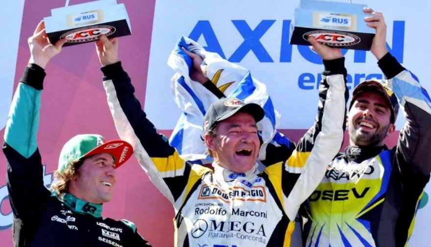 El festejo de “Johnnito”sobre el podio junto a Lambiris y a Martínez lo acerca más a la punta del campeonato que lidera Valentín Aguirre.