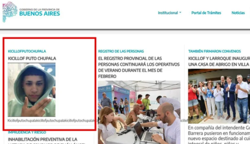 La página web oficial del gobierno de la Provincia de Buenos Aires fue hackeada en las primeras horas de este jueves 30 de enero. En una clara muestra de descontento, el grupo detrás de la acción publicó una amenaza contra el Gobernador Axel Kicillof. En la sección de Noticias, apareció una nota que contenía un mensaje explícitamente dirigido al mandatario provincial, acompañado por la imagen de un joven con capucha realizando el gesto de un arma, y el texto ofensivo: "puto chupala".
