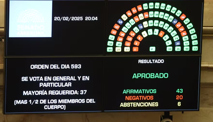 El Senado de la Nación aprobó finalmente la suspensión de las elecciones Primarias, Abiertas, Simultáneas y Obligatorias (PASO) a nivel nacional, transformando el proyecto en ley con 43 votos afirmativos, 20 en contra y 6 abstenciones. La sesión legislativa no estuvo exenta de controversias, ya que, además del debate sobre las PASO, surgieron tensiones en torno al escándalo relacionado con la criptomoneda $LIBRA, que involucra directamente al presidente Javier Milei.