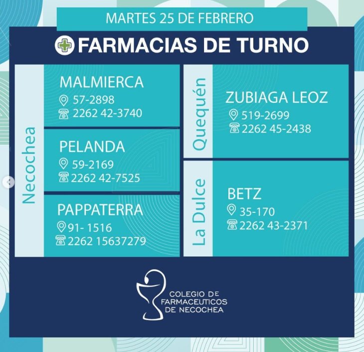 Estas serán las 5 farmacias de turno este martes 25 de febrero de 2025 en Necochea, Quequén y La Dulce:
