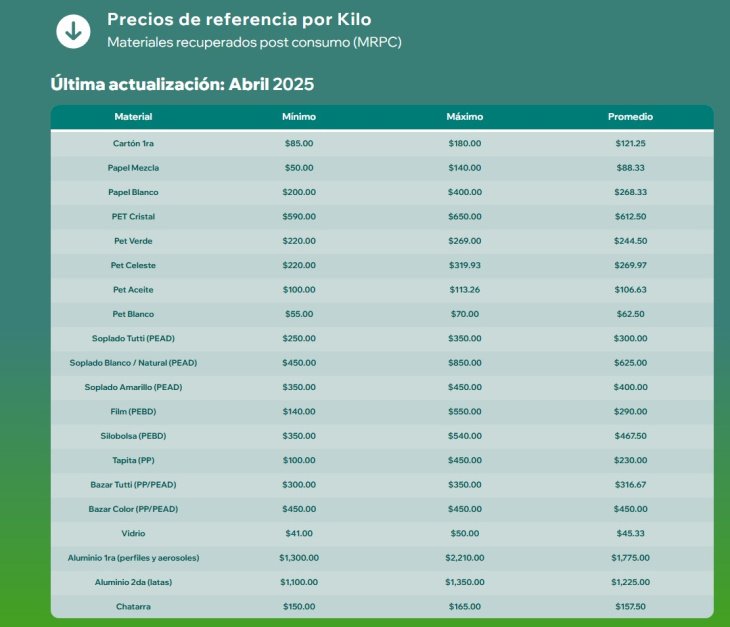 Para conocer la clase de ingresos que el municipio puede obtener de estos trabajos, en el sitio Conexión Reciclado publican un listado de los precios por kilo que se pagan en Argentina (al menos hasta abril de este año):