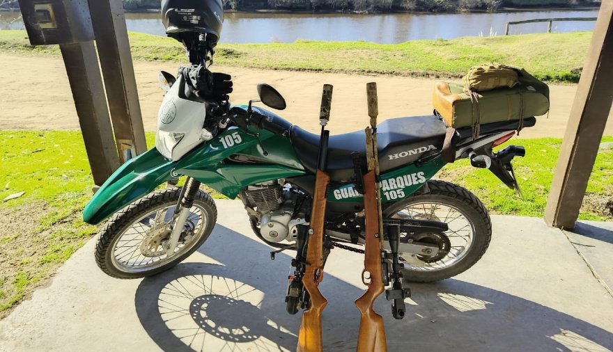 Tras solicitar apoyo, un móvil del Comando de Patrullas y personal motorizado de Guardaparques acudieron al lugar, constatando que los denunciados se encontraban cazando. Se labraron actas de infracción por contravención a las normativas vigentes y se procedió al secuestro de dos rifles de aire comprimido calibre 6.35, que quedaron a disposición del Juzgado de Faltas.