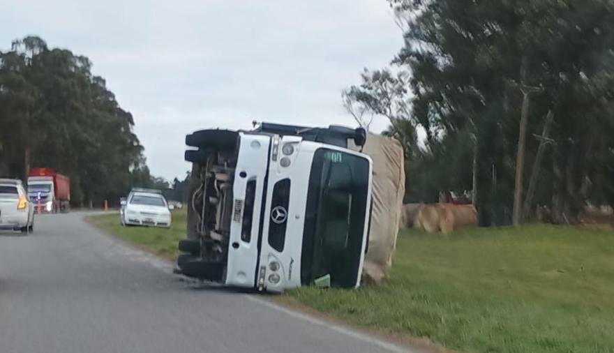 En la mañana de este jueves, un camión volcó en el kilómetro 25 de la Ruta Provincial Nº 86, a la altura del Paraje La Lita, frente a la Escuela Nº 36 y el Jardín de Infantes Nº 2 de La Dulce.