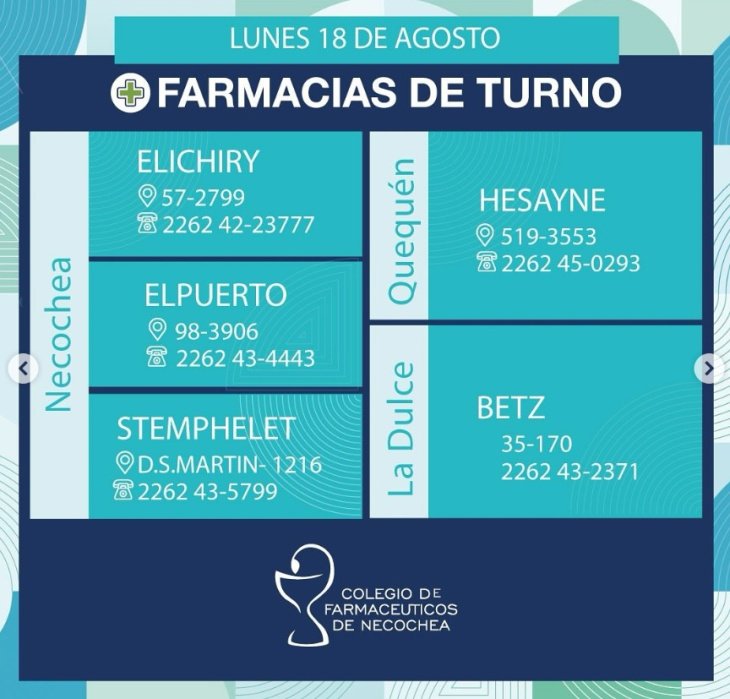 Estas son las 5 farmacias que estarán de turno en Necochea, Quequén y La Dulce este lunes 18-08: