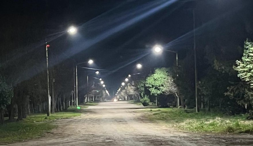 La Municipalidad de Necochea avanza con el plan integral de recambio de luminarias de sodio por tecnología LED en las localidades del interior, con un nivel de ejecución que ya supera el 50% en varios puntos del distrito.