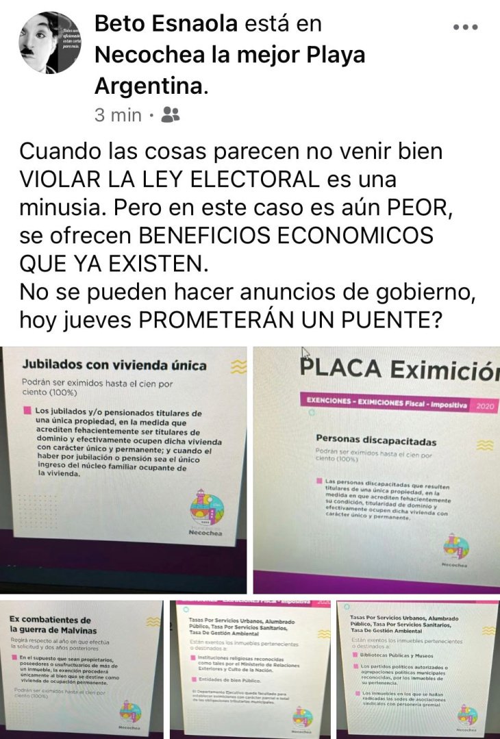 El ex concejal radical Alberto Esnaola, hoy acompañando a la lista de Somos Necochea (Graciana Maizzani en la cabeza de la lista), dejó su opinión al respecto:
