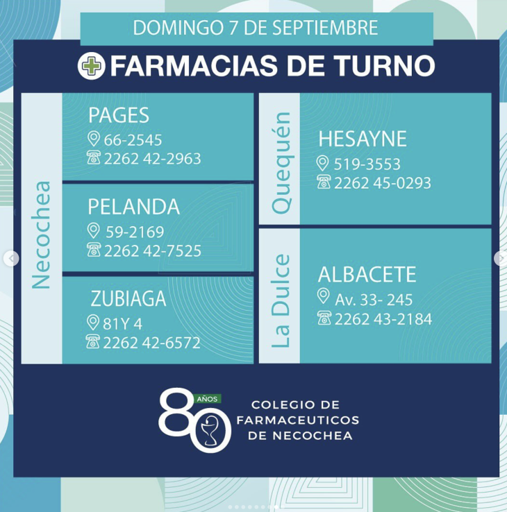 Farmacias de Turno en Necochea y Quequén este domingo 7-09