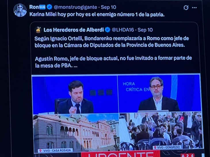 Y si bien la sucesión de ataques (expresadas en insultos, descalificaciones y denuncias falsas via Twitter) son una práctica metodológica de los libertarios casi como si fuera su forma natural de comunicación ("nosotros nos entendemos conversando; ellos, agrediendo") hasta ahora los ataques no habían cruzado la línea de tocar a Karina, algo que se rompió en las últimas horas, volviendo todo aún más turbio y beligerante que antes.