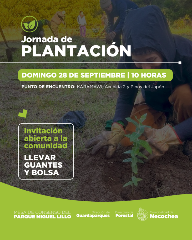 La convocatoria es para este domingo 28 de septiembre a partir de las 10 de la mañana en el complejo Karamawi, en Avenida 2 y Pinos del Japón, donde vecinos, familias y voluntarios podrán sumarse a la plantación de nuevas especies. Los organizadores recomiendan llevar guantes y bolsas para colaborar en las tareas de reforestación y limpieza