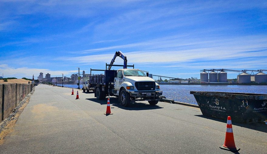 El Consorcio de Gestión de Puerto Quequén informa que se están llevando a cabo trabajos de mantenimiento en la Escollera Sur, específicamente en el reemplazo de columnas de alumbrado.