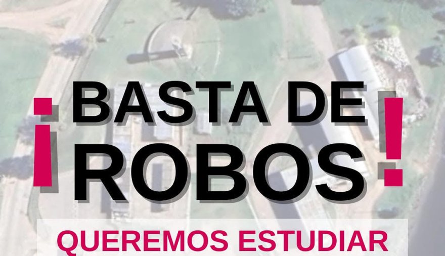 "Como saben durante todo el año hemos sufrido hechos delictivos. Desde robos hasta boquetes en el edificio la Ribera. Y en el dia de hoy decimos ¡*BASTA*! QUEREMOS ESTUDIAR SEGUROS. Por ende, los invitamos a concentrarnos este *viernes 24 de octubre a las 17hs* en la puerta de ingreso al complejo Jesuita Cardiel para visibilizar los hechos de inseguridad y vandálicos que venimos acarreando desde años.