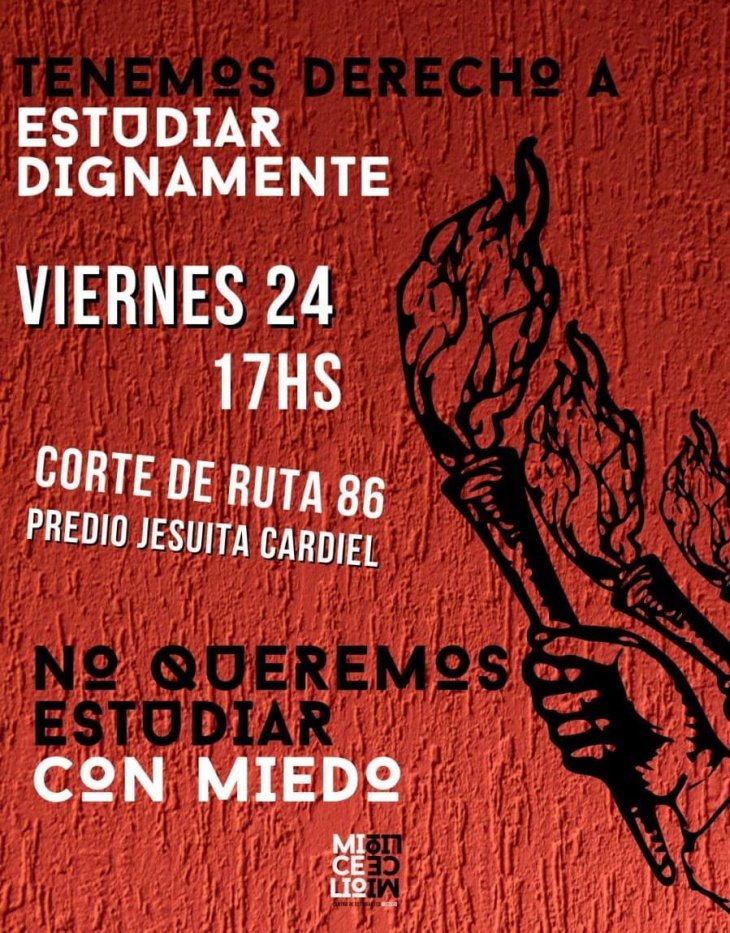 Para visibilizar la situación, a partir de las 17 horas los estudiantes llaman a una convocatoria en el ingreso del predio, sobre Avenida Jesuita Cardiel, con la intención de cortar el tránsito y llamar la atención de los vecinos sobre una situación que cíclicamente conoce reclamos por el mismo tema.