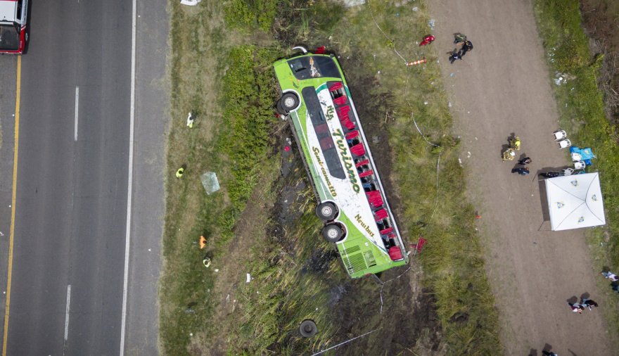 El accidente tuvo lugar esta mañana, cerca de las 8, a la altura del kilómetro 325 de la Ruta 2, en la localidad de General Pirán. Por motivos que intentan esclarecerse, el micro terminó volcando sobre el cantero central con 56 pasajeros a bordo.