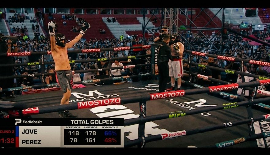 Cuando sonó el primer campanazo, el tono cambió de inmediato. Jove salió decidido y marcó el ritmo con una ofensiva constante que dejó a Pérez rápidamente contra las cuerdas. El necochense adoptó una postura defensiva casi desde el inicio, sin poder encontrar respuestas ante la presión y la precisión de su rival. Con el correr de los minutos, la diferencia se hizo cada vez más notoria y el castigo recibido por Pérez fue en aumento.
