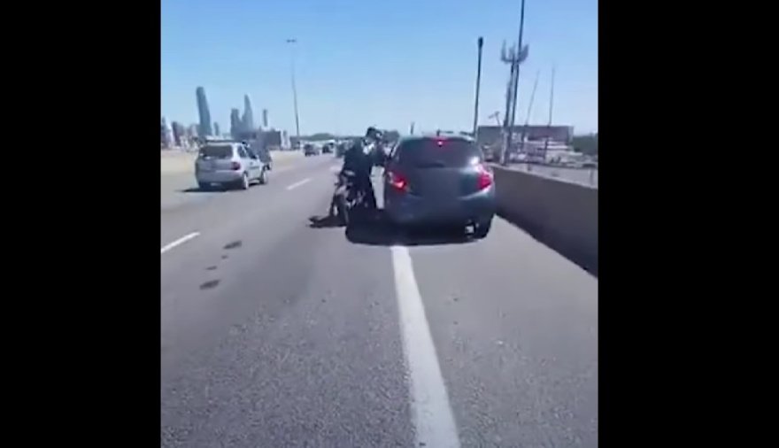 En las imágenes se observa cómo un automovilista y un motociclista intercambian insultos y agresiones mientras circulaban por la traza, realizando maniobras prohibidas -circular por la banquina- y detenciones imprudentes, causando un riesgo evitable al resto de conductores que se trasladaban en ese momento. Toda la secuencia fue registrada por otro usuario que transitaba detrás de ellos.