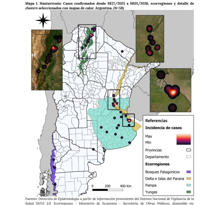 Argentina enfrenta un nuevo brote de hantavirus, según el último informe del Boletín Epidemiológico Nacional, actualizado hasta la primera semana de enero. El foco principal se encuentra en la región centro del país, integrada por las provincias de Buenos Aires, Entre Ríos y Santa Fe, donde se concentra la mayor cantidad de contagios y fallecimientos registrados en los últimos meses.