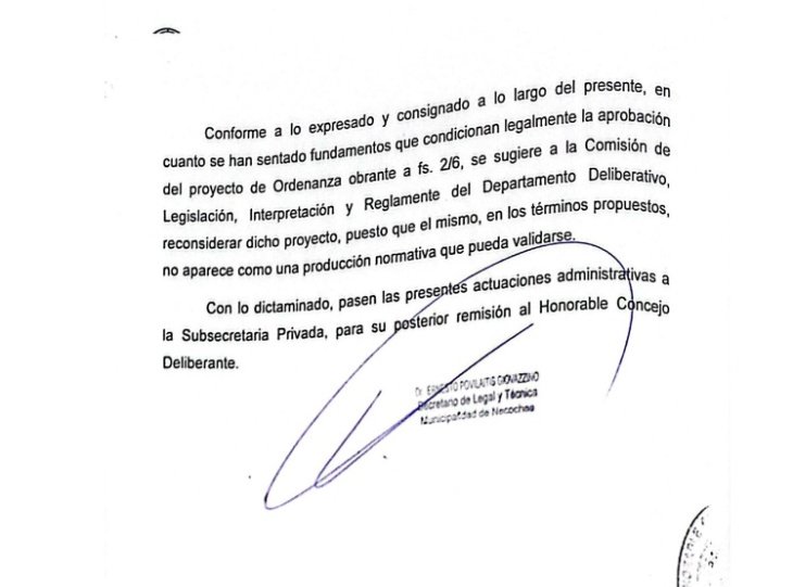 Y la respuesta parece ir en saga de la intención de seguir prolongando el tratamiento de la cosa: el abogado de la Municipalidad escribió 10 páginas en su dictamen para decirle al bloque libertario que su proyecto está tan mal redactado y tiene tantos errores e incongruencias que en algunos ítems pareciera que los autores del proyecto ni siquiera conocen el marco legal que tratan de aplicar.