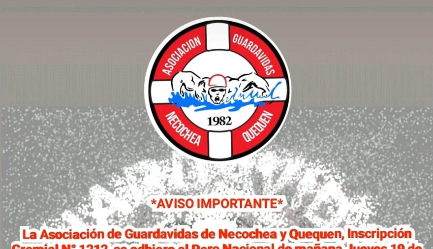 A través de un comunicado enviadoa los medios de prensa, la Asociación de Guardavidas de Necochea y Quequén (AGNQ) anunció que se pliega al paro nacional convocado por la Confederación General del Trabajo (CGT) eeste jueves 19 de febrero aunque sin dejar de trabajar.