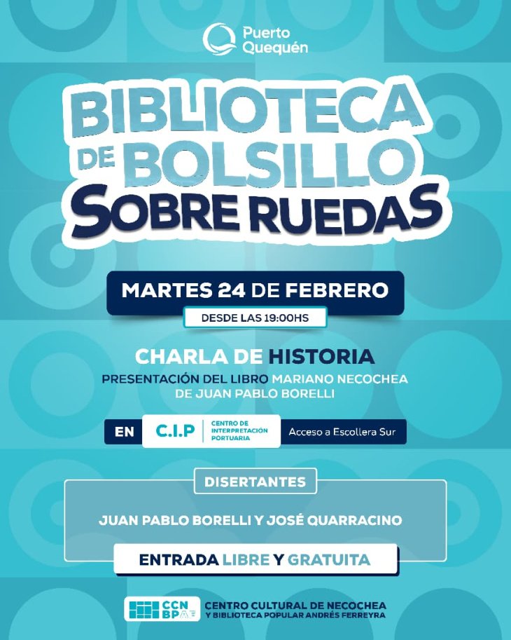 En el marco de la propuesta cultural itinerante Biblioteca de Bolsillo Sobre Ruedas, el Centro de Interpretación Portuaria y el Centro Cultural Necochea Biblioteca Popular Andrés Ferreyra organizan una nueva jornada de divulgación histórica abierta a toda la comunidad.