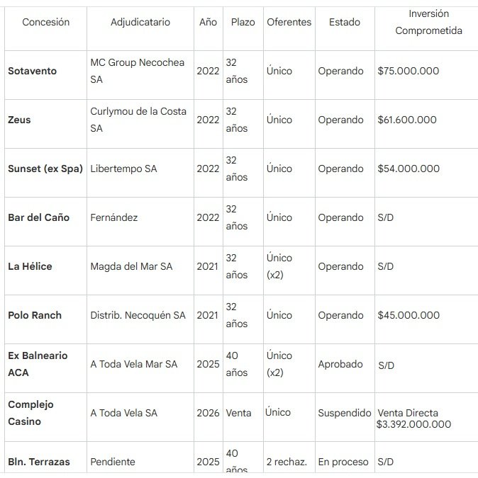 Para algunos casos se observa una degradación de las condiciones para el erario público: los plazos se extendieron de 32 a 40 años en 2025, acompañados por una bonificación del 90% del canon durante las primeras 15 temporadas. Esta estructura garantiza que el privado recupere la inversión nominal con solo una fracción mínima de su facturación potencial, mientras el municipio renuncia a ingresos genuinos. Cínicamente el Municipio señala que ha marcado un "cambio de paradigma: del deterioro de los espacios públicos a su recuperación mediante inversión y explotación regulada".