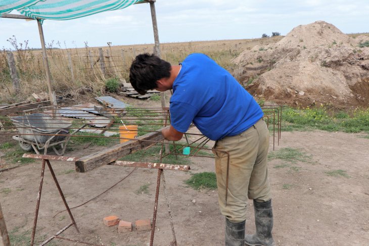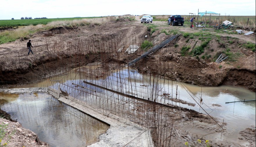 Tras el desvío provisorio del curso del arroyo para poder ejecutar los trabajos en óptimas condiciones, personal contratado procedió a excavar bajo el nivel de agua para permitir el emplazamiento.