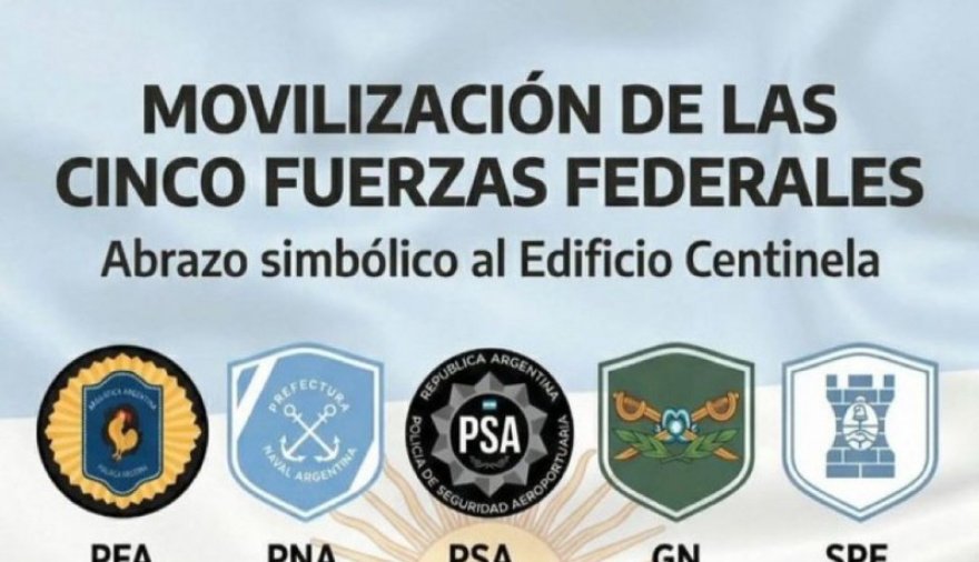 Las cinco fuerzas federales llevarán a cabo una inédita protesta el próximo 2 de abril en reclamo a los bajos salarios. Es la primera vez en la historia que miembros de Prefectura, Gendarmería, Policía de Seguridad Aeroportuaria, Servicio Penitenciario Federal y Policía Federal convocan de manera conjunta a una protesta que consistirá en un abrazo solidario en el edificio Centinela de Retiro, sede de la Gendarmería.