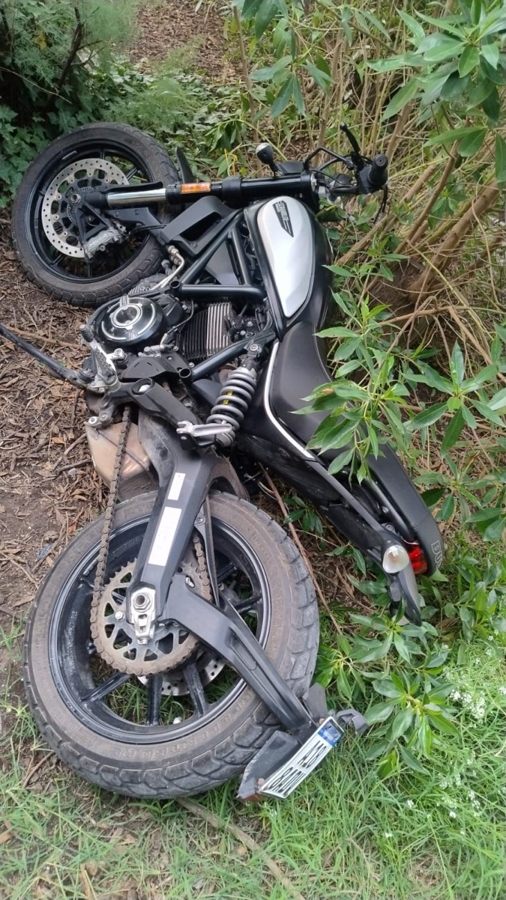 Al arribar al lugar, los uniformados encontraron una motocicleta Ducati Scrambler 800 cc, patente A118ADV, que se encontraba escondida en un terreno baldío y cubierta con plantas del lugar, en un claro intento por evitar su detección.