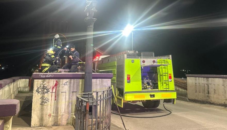 Al arribar al sitio, efectivos del Comando de Patrullas Necochea constataron que personal de Defensa Civil ya se encontraba trabajando intensamente para sofocar las llamas en una de las cabinas que forman parte de la estructura del puente.