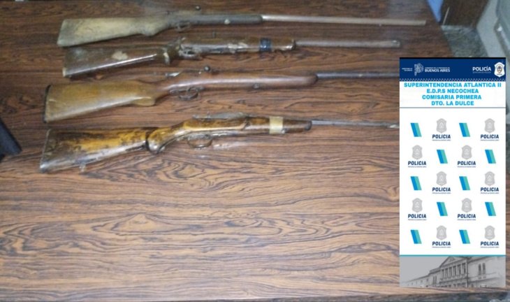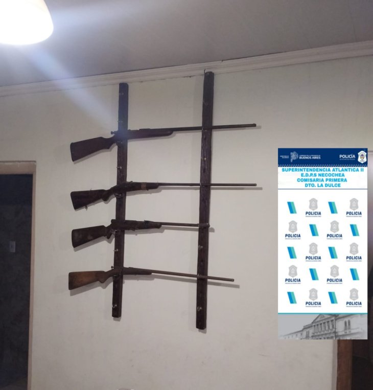 Durante el operativo, la policía concretó la aprehensión del sospechoso y procedió al secuestro de cuatro armas largas: