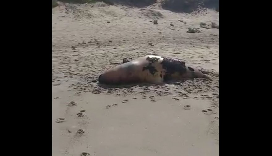 Ahora a través del servicio de mensajería instantánea WhatsApp circula un video en el que un vecino muestra a un lobo marino muerto tirado en la playa de Quequén, hinchado y en estado de descomposición.